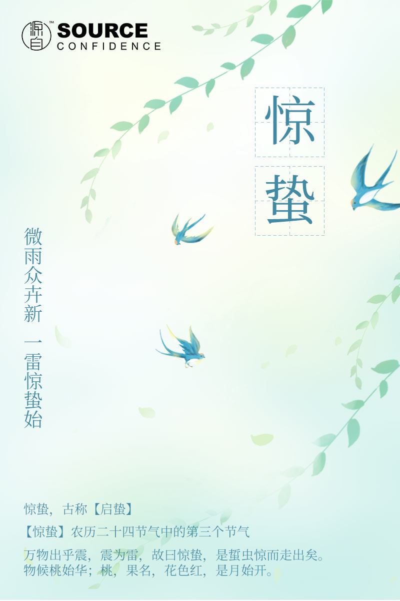 惊蛰,是农历二十四节气中的第三个,古称“启蛰”。此时天气回暖,春雷始鸣,惊醒蛰伏的冬虫。故取名为惊蛰。